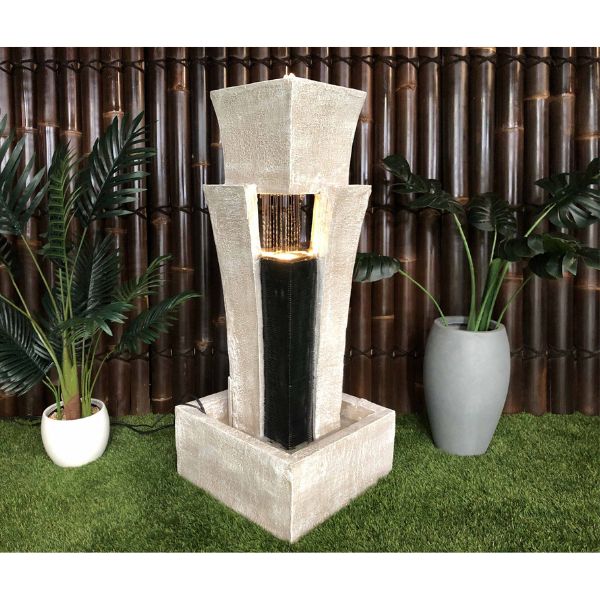 Modern Design: The fountain has a sleek, contemporary design with a minimalist pillar structure, making it a statement piece for modern landscapes.