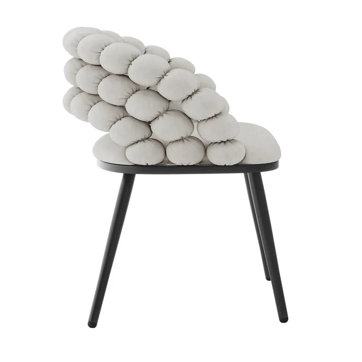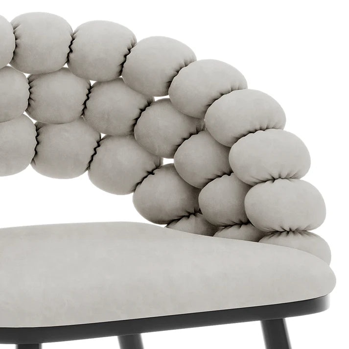 Wrapped in smooth velvet, the Jacqueline chairs feature a curved Hairball backrest that offers a cosy, supportive shape while standing out as a design feature. Thick foam padding makes each seat soft and inviting, while black powder-coated legs provide strength and a modern edge. Anti-slip feet pads protect your floors, making these chairs ideal for timber, tile, or laminate surfaces. The refined Warm Grey shade and Oatmeal fits beautifully into cool-toned, minimalist, or modern interiors.