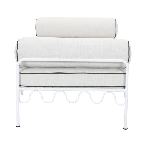 Contrasting piping trims around the long cushion and bolster cushions add a pop of colour and a tailored feel, and the quality Olefin covers are durable, weather-resistant, and washable.