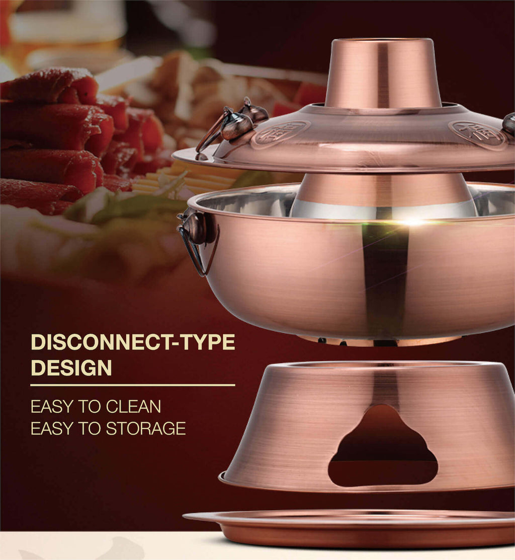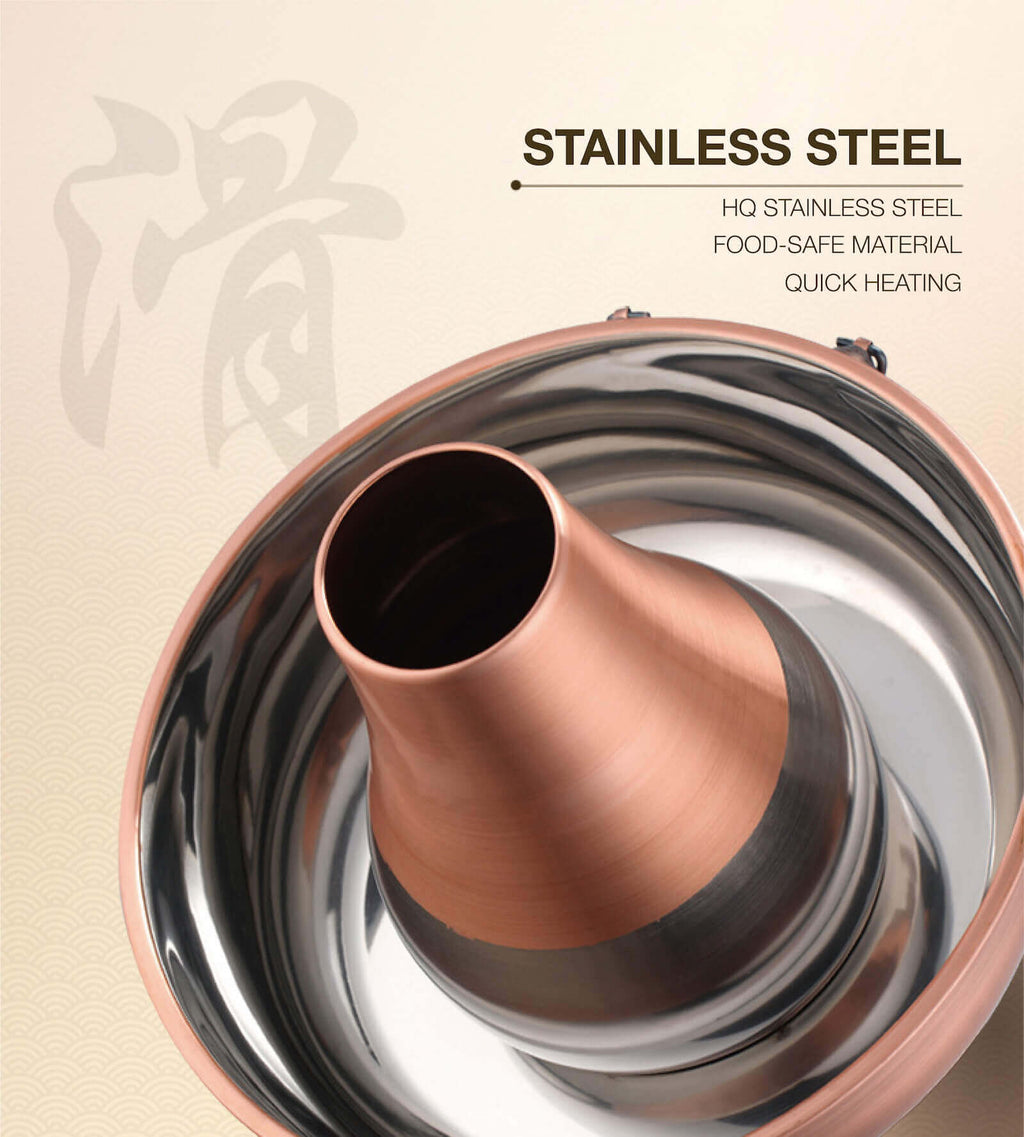 - The base of the traditional hot pot holds charcoal briquettes, over a grate that allows the ashes to drop below, so more briquettes could be added to keep the pot hot.