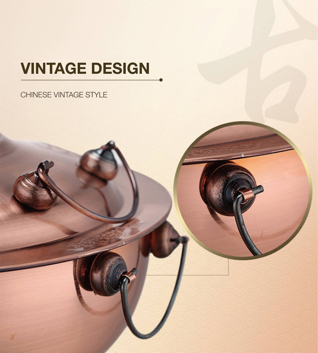 Traditionall Red Copper Beijing Style Large Charcoal Hot Pot. 34cms