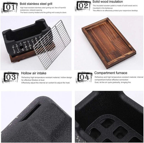 Akido 24cm Portable Charcoal Hibachi wStainless Steel Grill